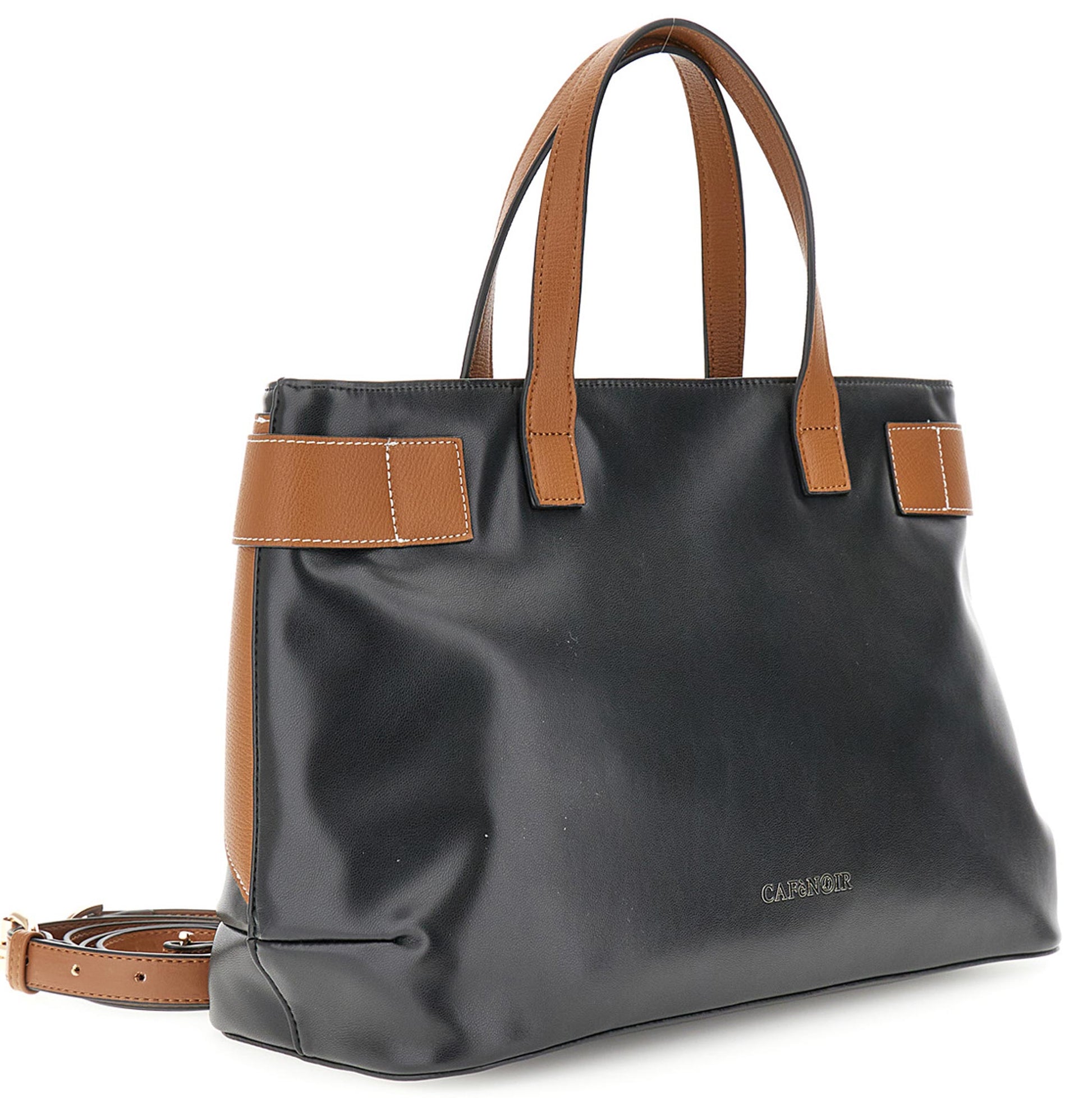 Borsa a mano in similpelle caratterizzata da un elegante passante con accessorio in metallo e cuciture a contrasto. dotata di tracolla removibile. ideale per ogni look.