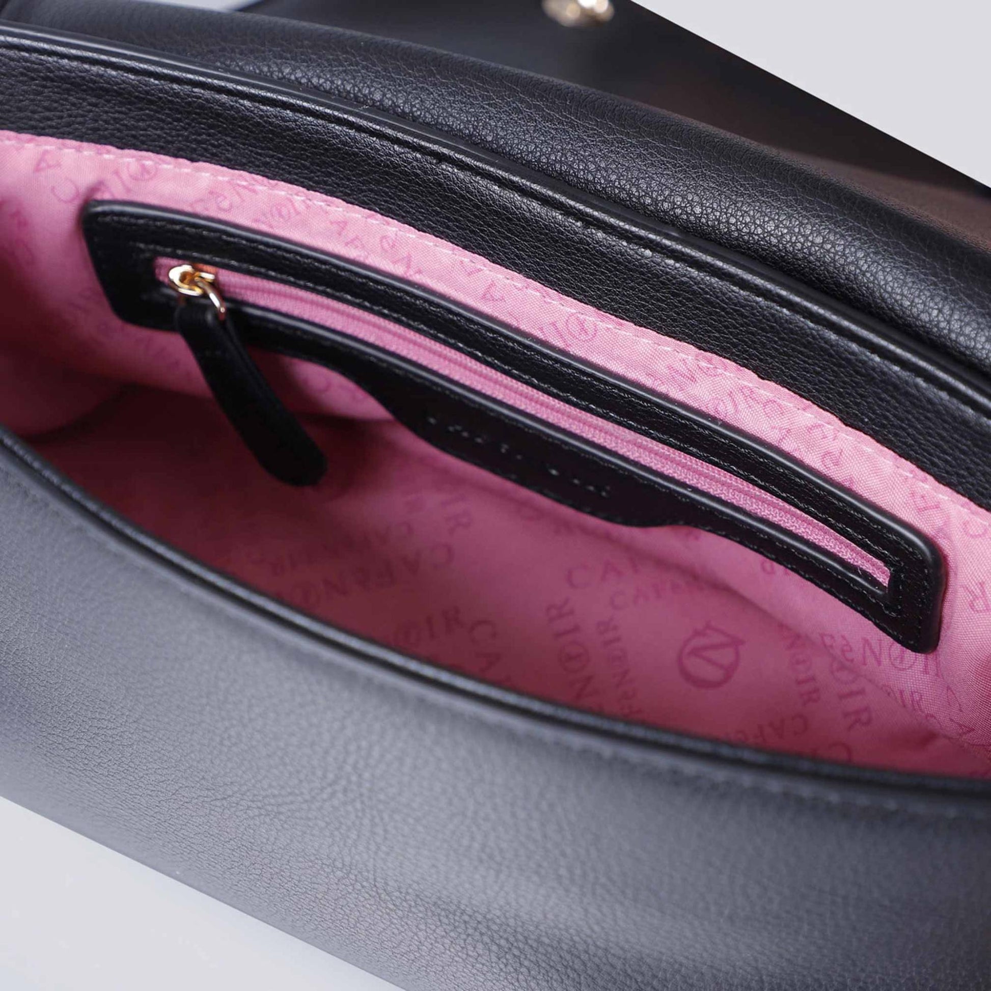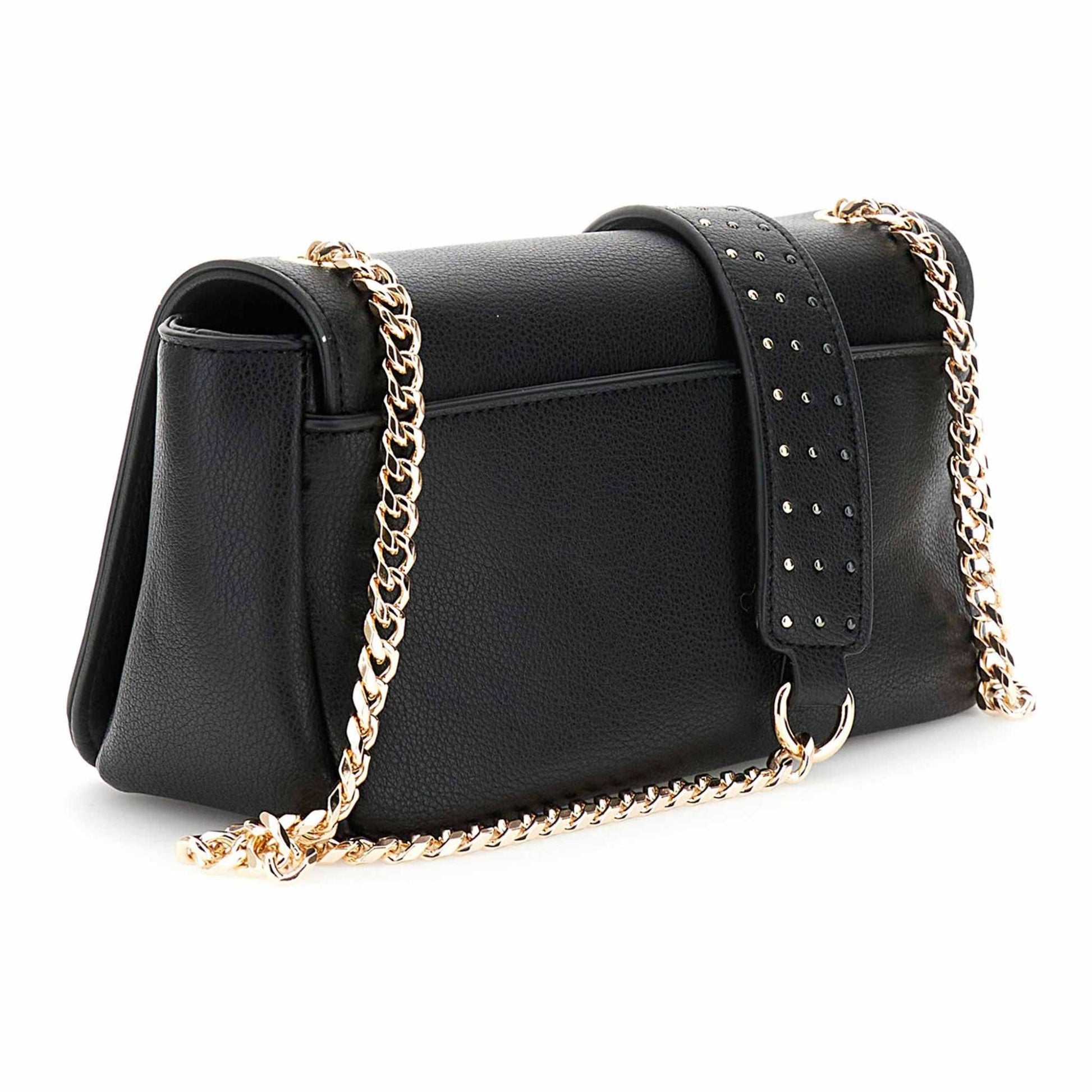 Tracolla in similpelle con pattina decorata da borchie e rivetti a contrasto. tracolla in catena con spallaccio per un tocco rock e praticità quotidiana.