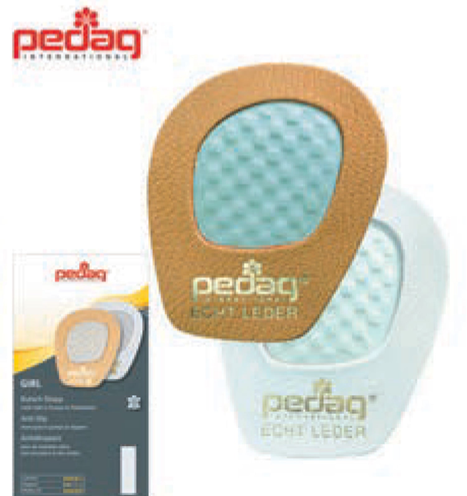 Morbido cuscinetto antiscivolo in pelle. Particolarmente adatto per le scarpe col tacco alto. Autoadesive, per essere fissato alla scarpa.