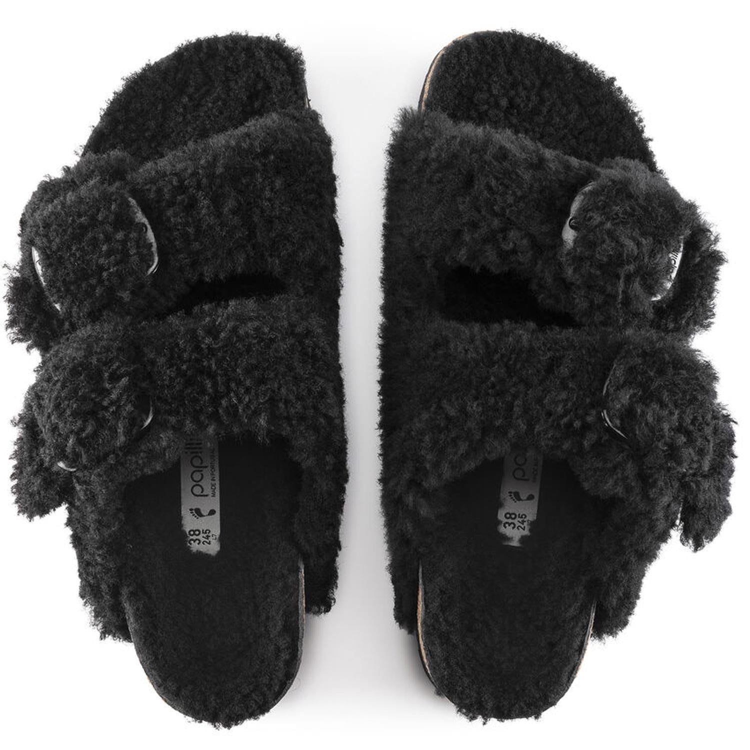 Sandali Arizona Plateau Big Buckle Teddy nero Papillio by Birkenstock 1021705