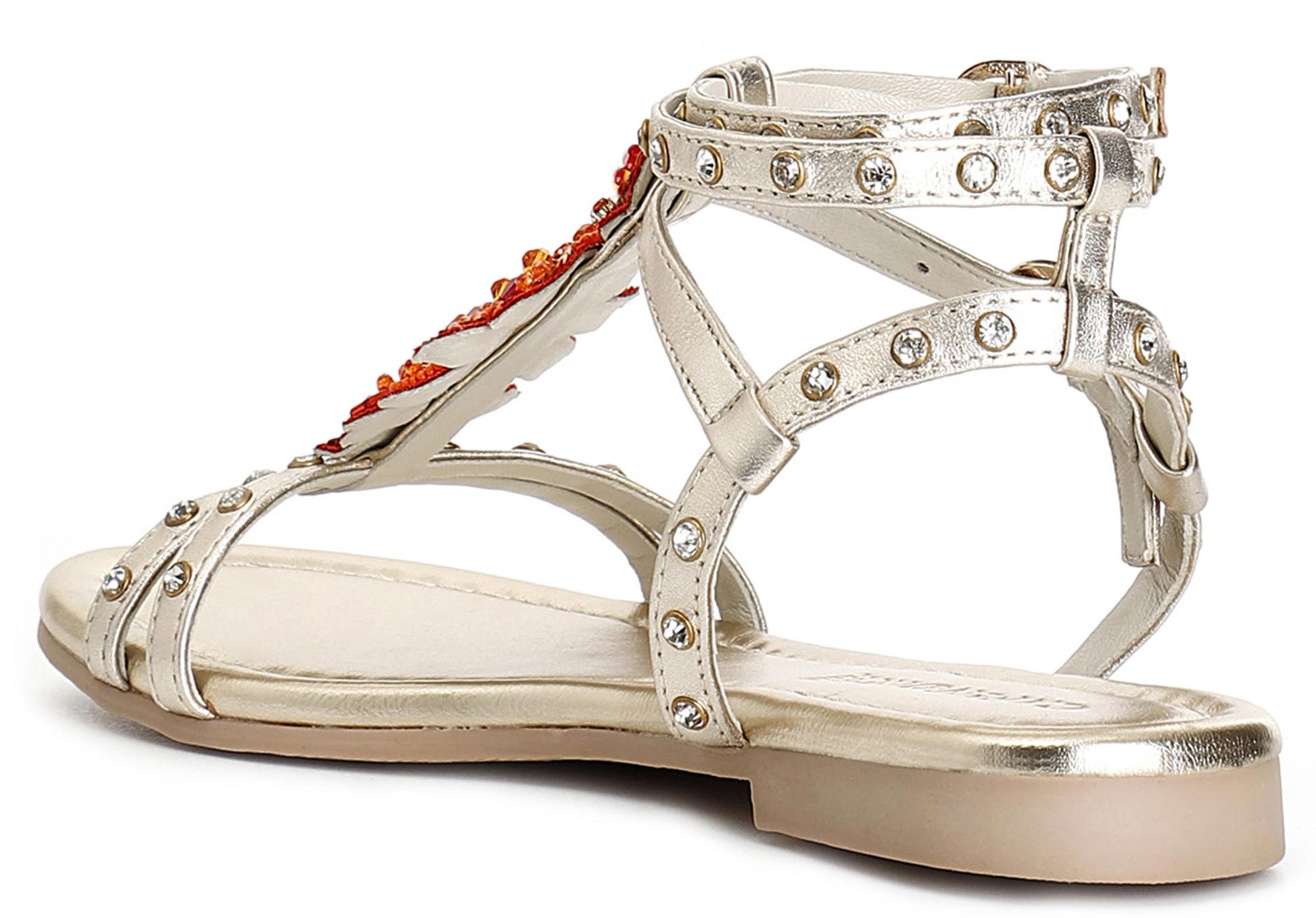 Sandali CafèNoir GG2554 scarpe donna in pelle con accessorio foglia oro