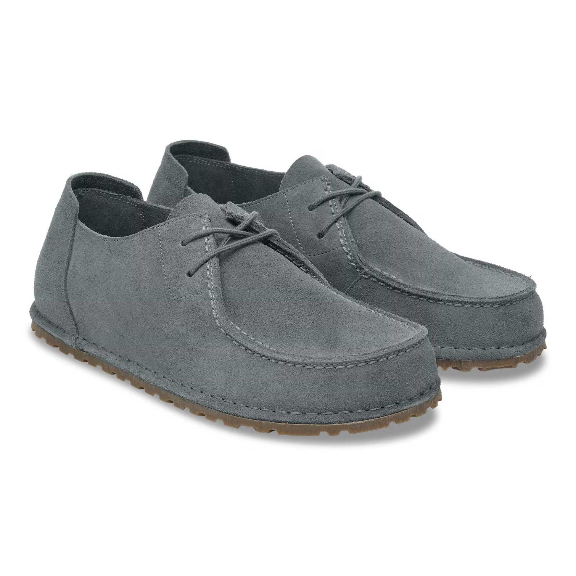 BIRKENSTOCK Utti è una scarpa in stile mocassino dal design senza tempo. L'appariscente cucitura è una vera chicca. La morbida linguetta sul tallone aumenta la comodità di indosso ma permette anche di infilare e sfilare comodamente la scarpa. La tomaia in pelle scamosciata particolarmente morbida rende il design della ciabatta naturale e avvolge il piede come una seconda pelle.