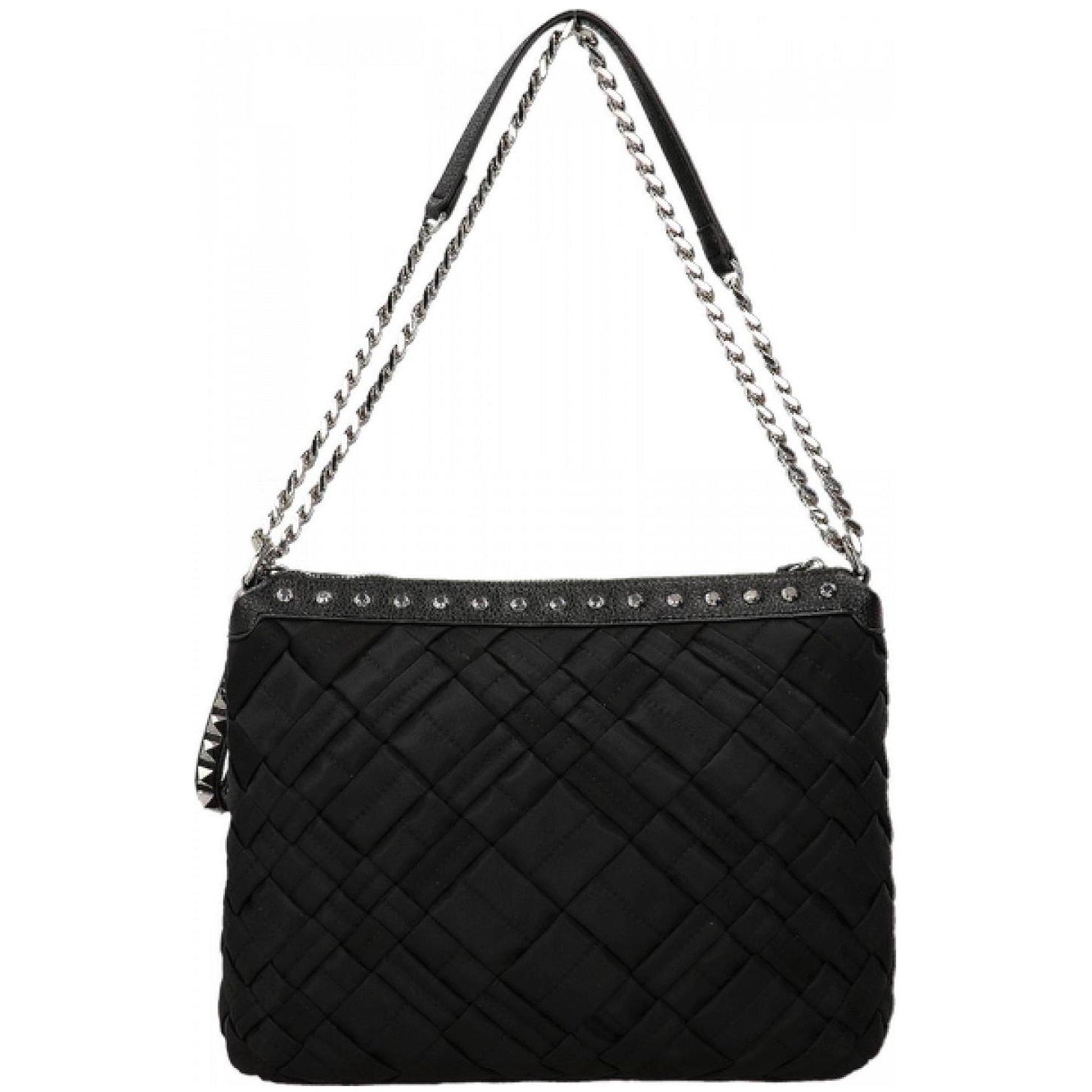 Borsa shopping in nylon intrecciato con chiusura a zip, tracolla di catena