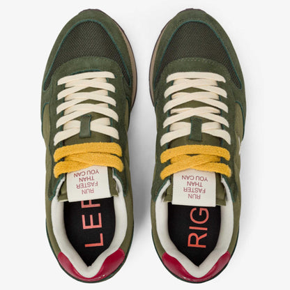 Tom Vintage si ispira alla classica running SUN68 e la reinterpreta in chiave autentica con uno speciale trattamento effetto used. La suola è decorata con il lettering "Run faster".