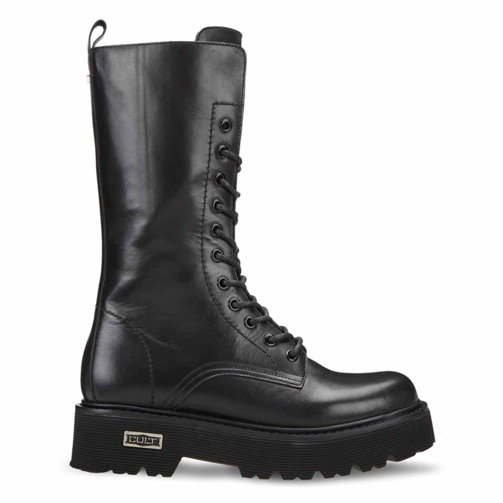 Comodi e dalla linea urban chic questi stivali firmati Cult. In pelle nera, con chiusura tramite stringhe su occhielli tono su tono, questi stivali saranno il complemento perfetto dei vostri outfit invernali.