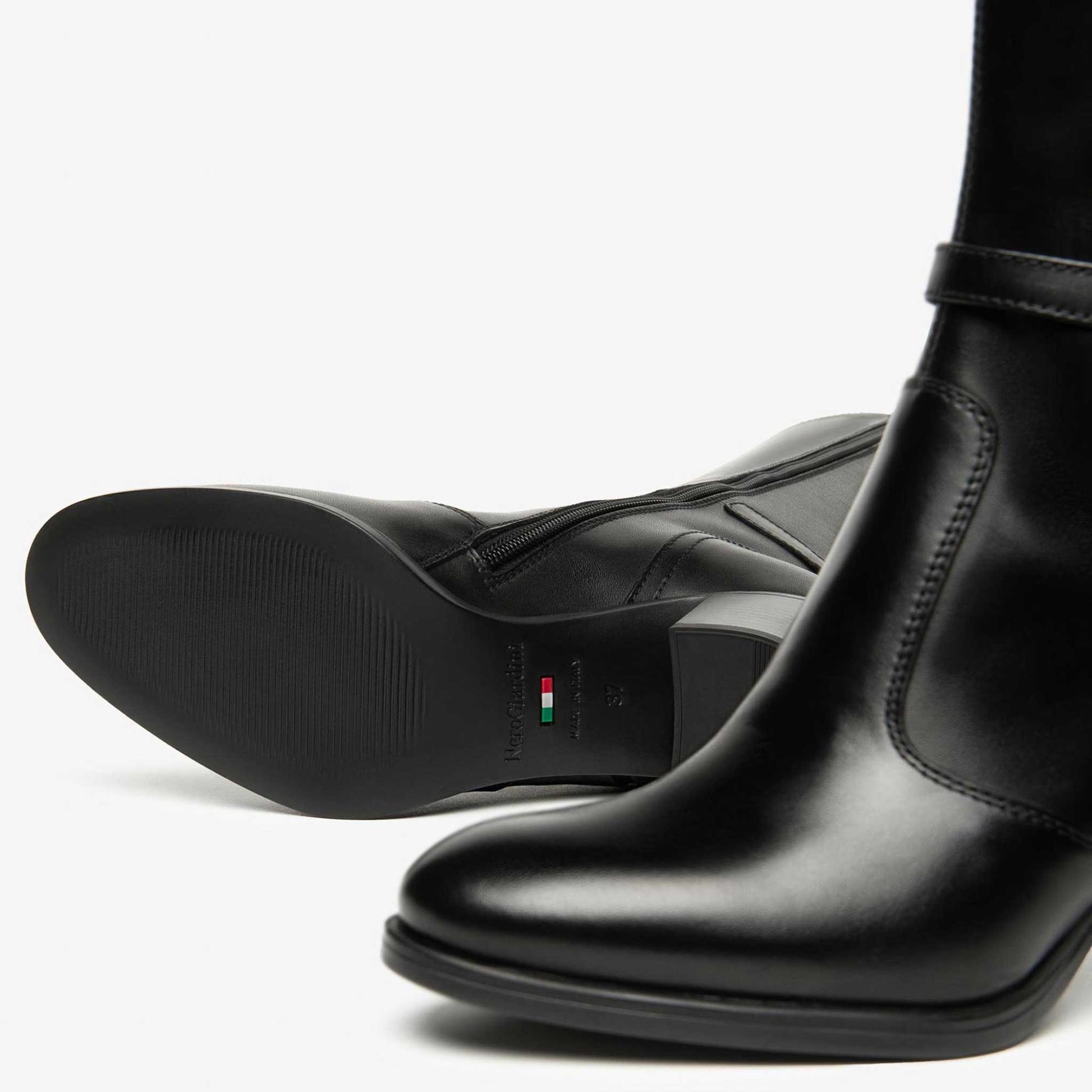 Stivali NeroGiardini, personalità e stile unico. Le calzature NeroGiardini sono realizzate in Italia, utilizzando materiali di qualità e le più avanzate tecniche di lavorazione. Ogni scarpa è il risultato della esperta competenza artigiana tramandata di generazione in generazione. Tutti i modelli sono progettati per offrire comodità e versatilità in ogni momento della giornata, dal lavoro alla serata speciale. Il reparto stile NeroGiardini è costantemente alla ricerca di nuove tendenze per offrire calzature sempre attuali e originali. NeroGiardini propone anche una collezione di borse, perfettamente abbinabili alle calzature, per un total look Made in Italy impeccabile.La produzione Made in Italy delle calzature NeroGiardini è sottolineata dal tricolore impresso sulle suole e sul packaging.